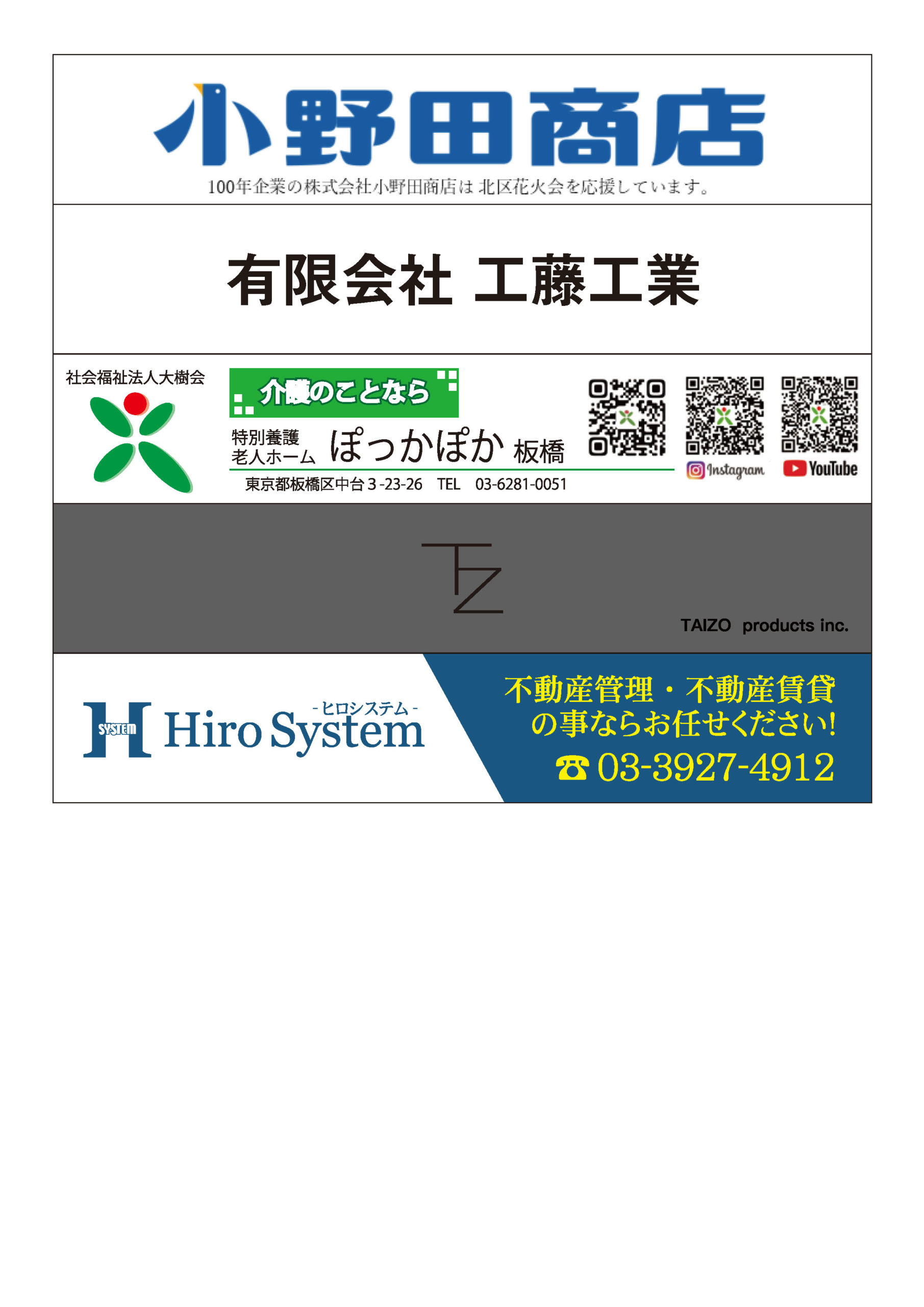 第12回北区花火会にご協賛頂きありがとうございます